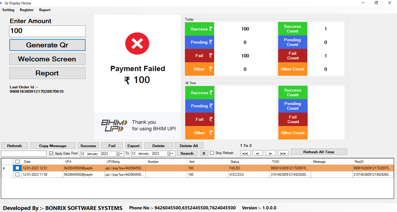 Android App - Bonrix SMS Forwarder for Dynamic QR Code Display -BHIM UPI Payment Confirmation by SMS