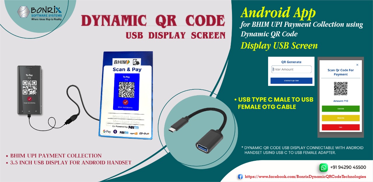 Customized Programming Supports available for 3.5 inch USB Dynamic QR Code Display for BHIM UPI Payment Collection using Payment Gateway Integration - Dynamic QR API ( #DQR #API ) like #Paytm #PhonePe #Gpay #MargPay #BharatPe #cashfree #Razorpay